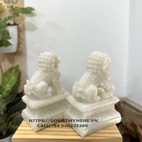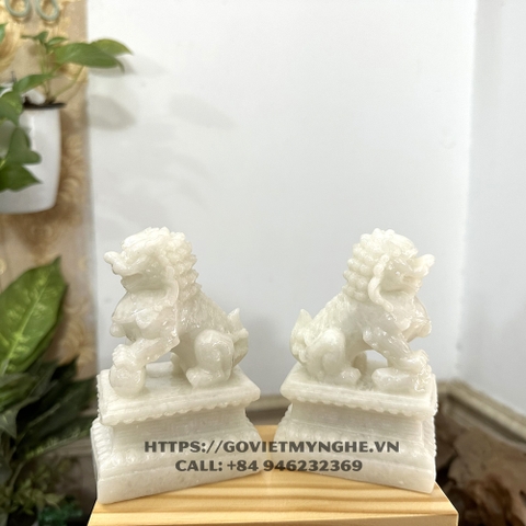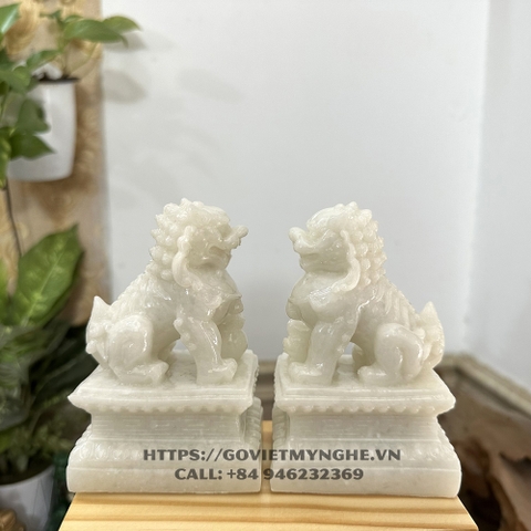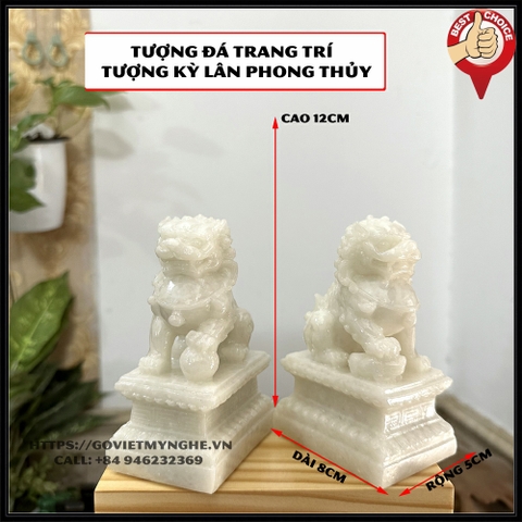 + 01 Tượng đá trang trí phong thủy Cặp 2 tượng Kỳ Lân trang trí phong thủy - Chiều Cao 12cm - Màu trắng đá non nước