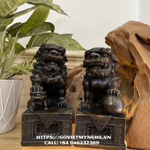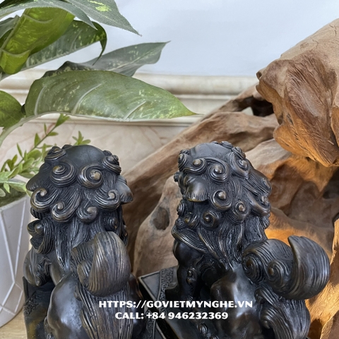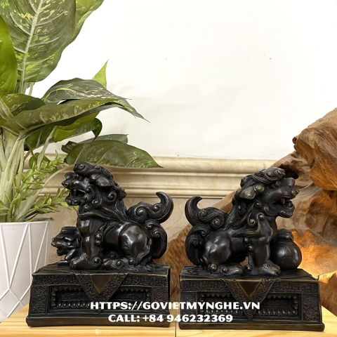 + 01 Tượng đá trang trí phong thủy Cặp 2 tượng Kỳ Lân trang trí phong thủy - Chiều Cao 15cm - Màu nâu đen