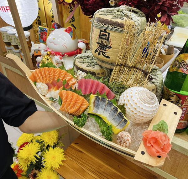 + Khay thuyền gỗ sushi sashimi được dùng để trang trí Sushi - Sashimi trong phong cách trang trí ẩm thực Nhật Bản.