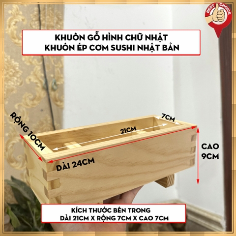 + 01 [Hàng chuẩn Nhật] Khuôn gỗ ép cơm Sushi hình chữ Nhật Khuôn cơm Sushi - Dụng cụ làm cho Bếp Nhà Hàng Nhật.
