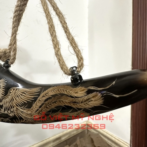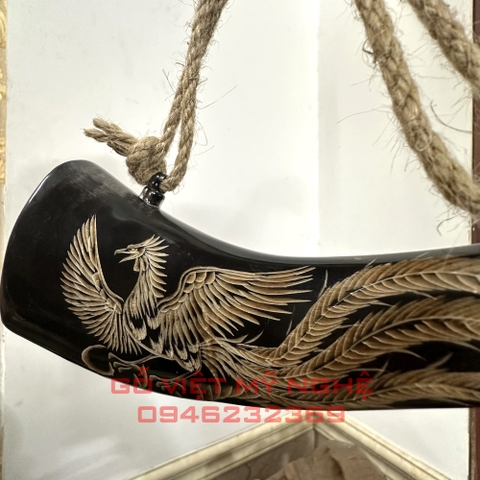 + Kèn tù và sừng trâu đen - sừng trâu điêu khắc hình chim phụng - Dài 20cm - thủ công mỹ nghệ Việt Nam