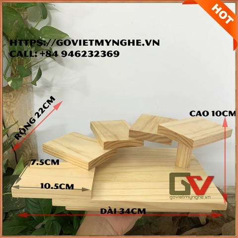 + Khay gỗ bậc thang được làm từ chất liệu gỗ Thông tự nhiên, chất lượng gỗ đạt tiêu chuẩn vệ sinh an toàn thực phẩm và xuất khẩu sang nhiều nước.