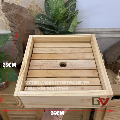 + Khay gỗ trang trí kích thước: 25cm x 25cm , Cao 7 (cm)