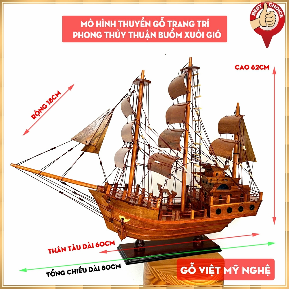 *** Xin lưu ý*** : Kích thước Thân tàu là 60cm, phía trước mũi tàu có cột buồm đưa ra thêm khoảng 18~20cm.