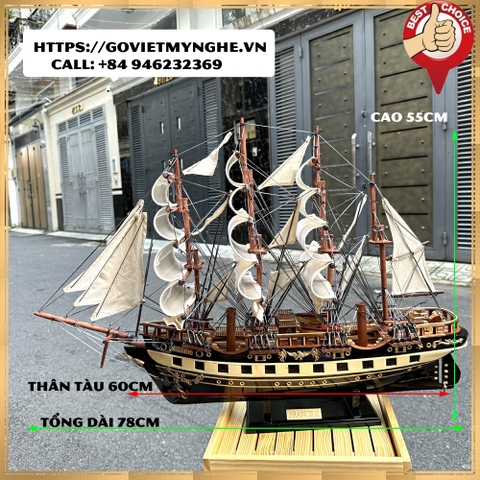 + Kích thước: Thân tàu dài 60cm/ Kích thước tổng thể: Dài 78 cm x Rộng 20 cm x Cao 55 cm