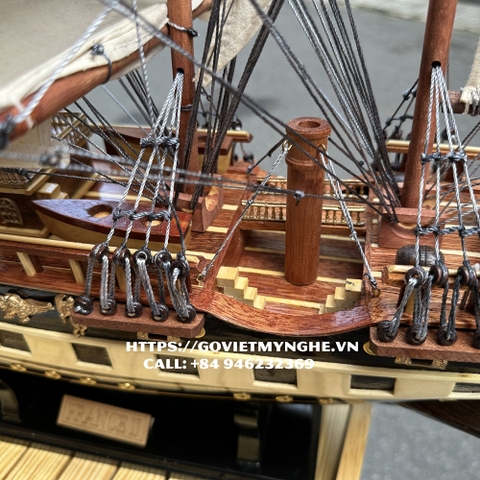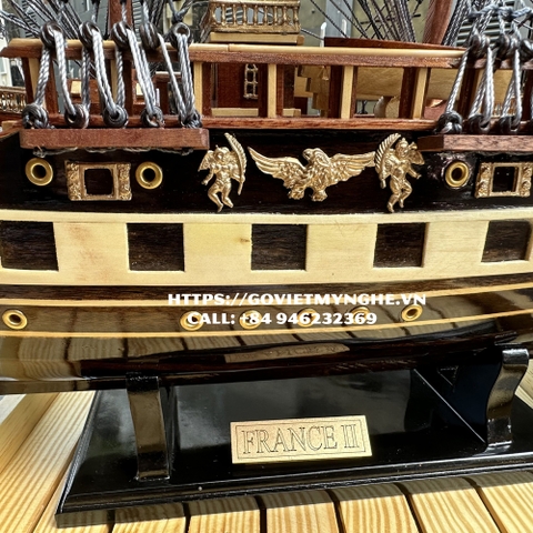 + Mô hình thuyền gỗ chở hàng France II gỗ được hoàn thành với hàng chục giờ làm việc bởi các nghệ nhân lành nghề có trình độ kỹ thuật cao. Với bàn tay khéo léo, tỉ mỉ và cẩn thận, các nghệ nhân thủ công mỹ nghệ đã mô phỏng từ chiếc thuyền thực tế thành mô hình tàu thuyền gỗ, cùng các chi tiết như vỏ tàu, thân tàu, boong tàu, cột và cánh buồm, cũng như các trang trí khác...