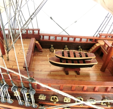 - Hệ thống neo tàu, bánh lái đều được làm thủ công, tỉ mỉ, chất liệu chì.