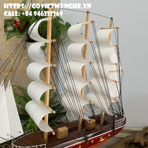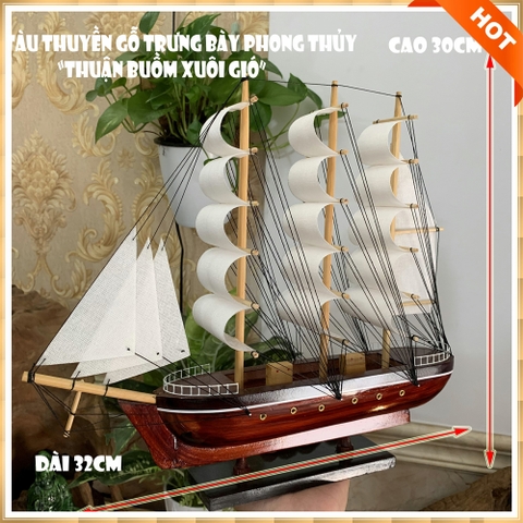 + 01 [Dài 32cm - Giao hàng nguyên chiếc] Mô hình tàu thuyền gỗ trang trí nhà cửa - tàu gỗ phong thủy thuận buồm xuôi gió
