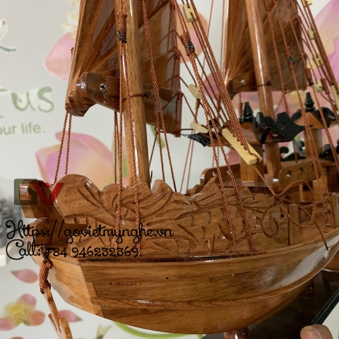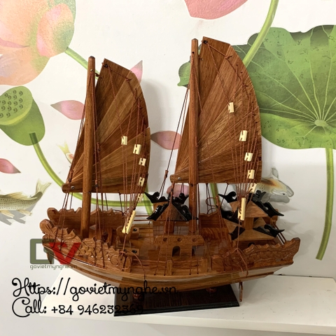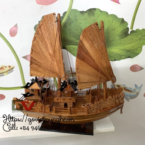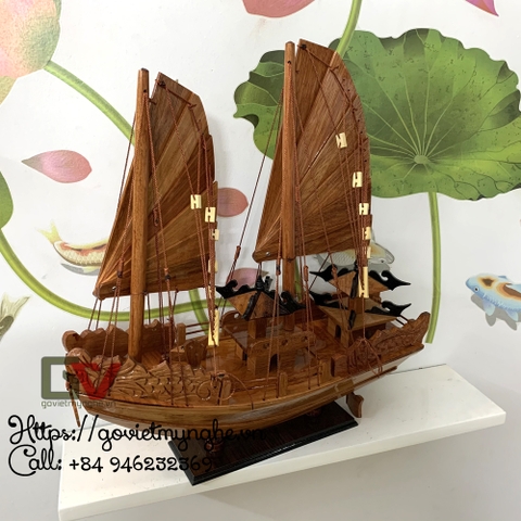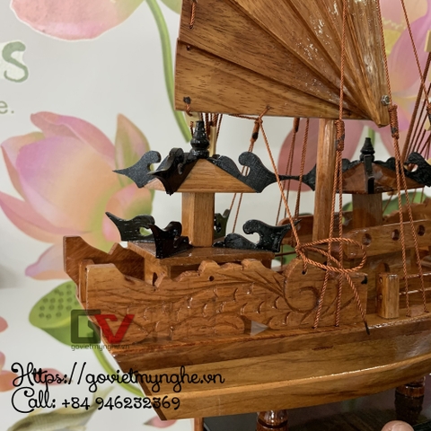 + 01 Mô hình tàu thuyền gỗ trang trí tàu Hạ Long Rồng - Dài 40cm - Gỗ Hương - Buồm gỗ