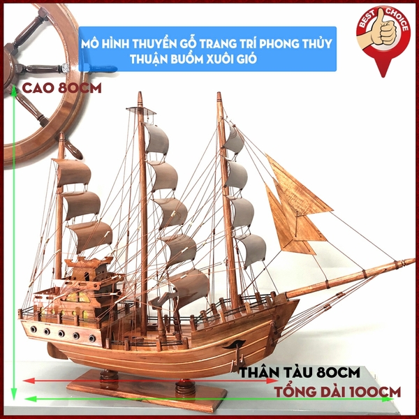 *** Xin lưu ý*** : Kích thước Thân tàu là 80cm, phía trước mũi tàu có cột buồm đưa ra thêm khoảng 10~12cm.