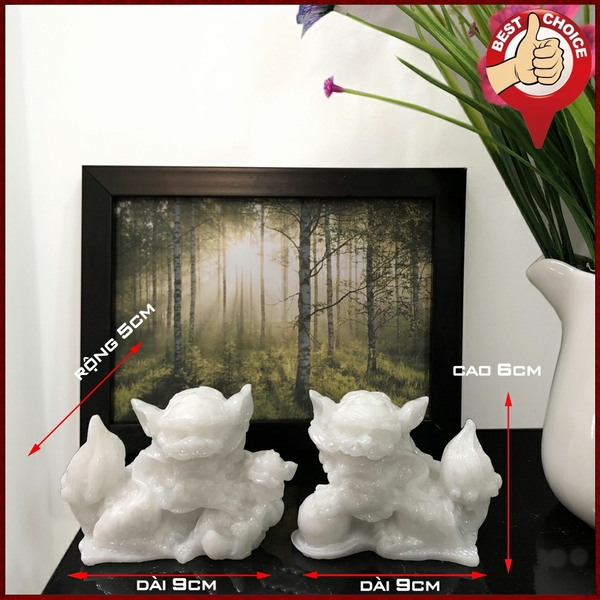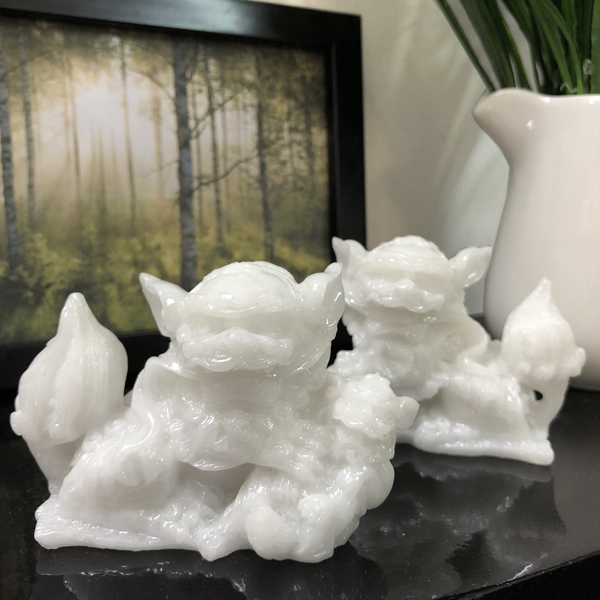 + 01 Tượng đá trang trí phong thủy Cặp 2 tượng Kỳ Lân trang trí phong thủy - Chiều Cao 6cm - Màu trắng đá non nước