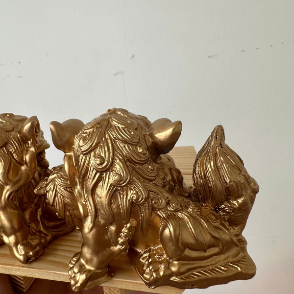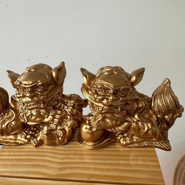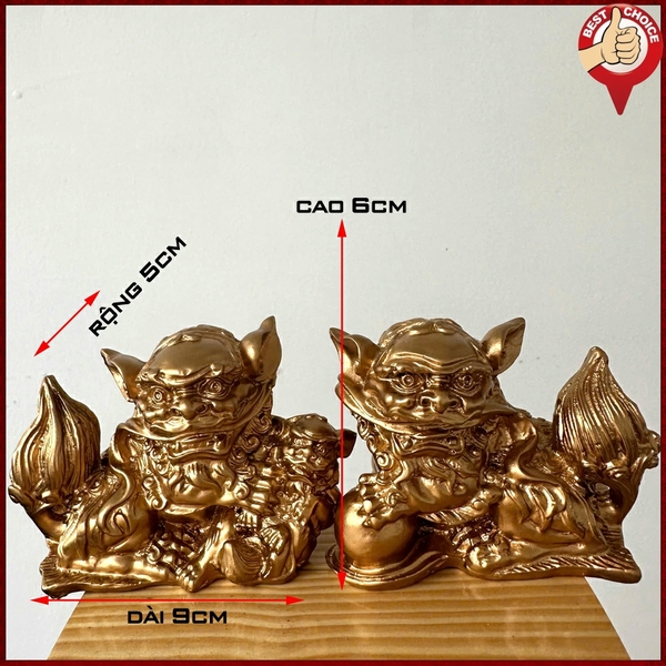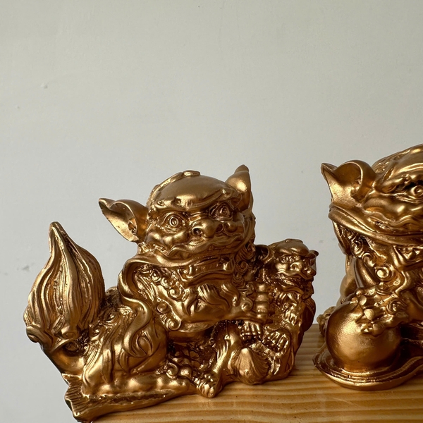 + 01 Tượng đá trang trí phong thủy Cặp 2 tượng Kỳ Lân trang trí phong thủy - Chiều Cao 6cm - Màu nhũ đồng