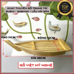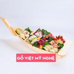 + Khay thuyền gỗ được dùng để trang trí Sushi & Sashimi, Lẩu Hải Sản... phong cách trang trí ẩm thực đa dạng.