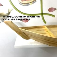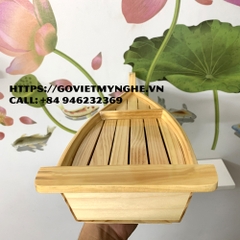 + Khay thuyền gỗ được làm từ chất liệu gỗ Thông tự nhiên, chất lượng gỗ đạt tiêu chuẩn vệ sinh an toàn thực phẩm và xuất khẩu sang nhiều nước.