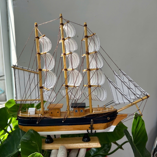 + [Dài 30cm - Giao nguyên chiếc] Mô hình thuyền gỗ thuyền trang trí tàu chiến cổ Jylland - Gỗ Sồi - Buồm vải bố