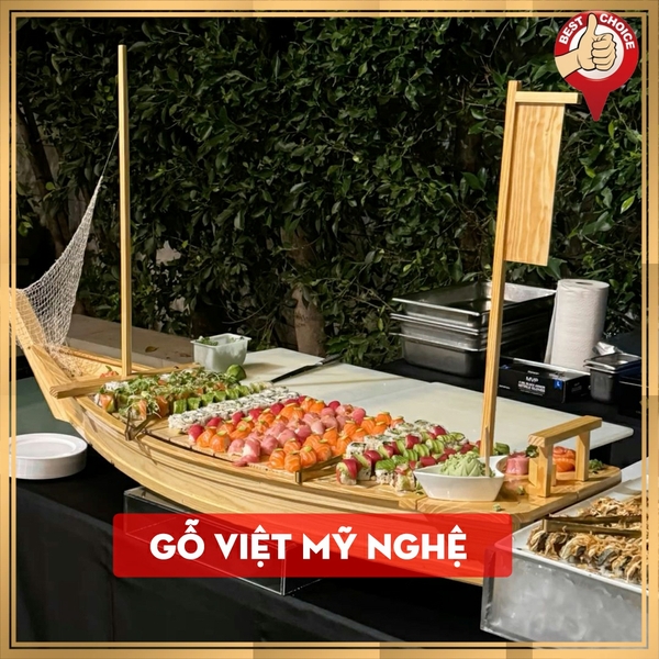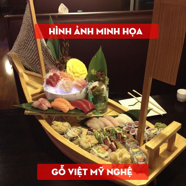 + Khay thuyền gỗ được dùng để trang trí Sushi & Sashimi, Lẩu Hải Sản... phong cách trang trí ẩm thực đa dạng.