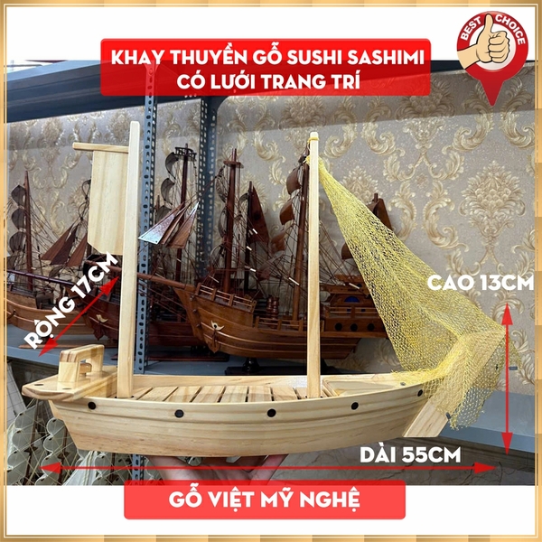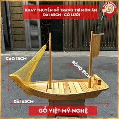 + [Dài 45cm - 55cm - 65cm có lưới] Khay thuyền gỗ trang trí sushi - sashimi - hải sản - thuyền gỗ trang trí món ăn chuyên dụng - Gỗ thông
