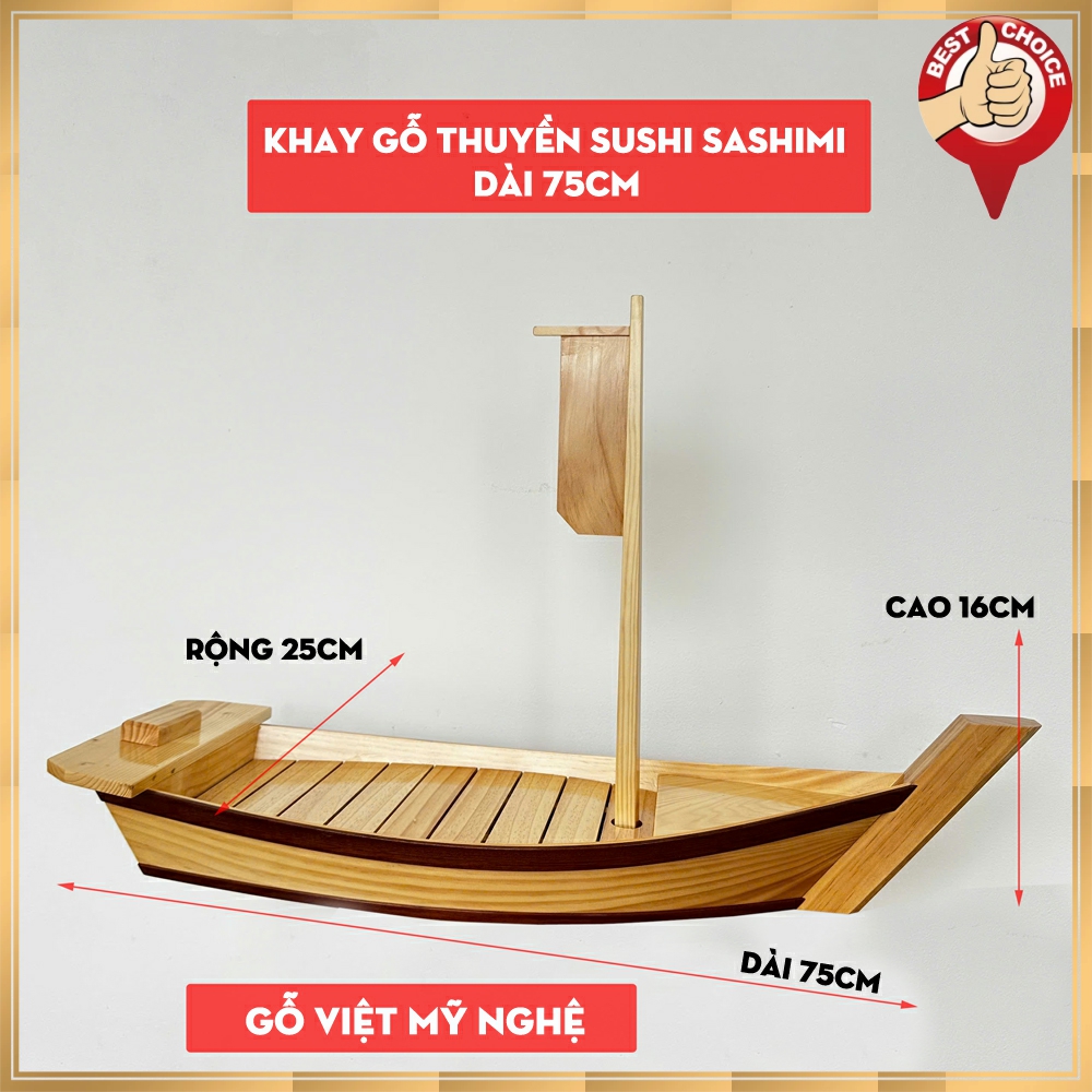 + [Dài 75cm - Hàng Chuẩn Nhật] Khay gỗ đựng sushi - khay gỗ thuyền đựng sashimi thuyền gỗ sushi - Gỗ thông