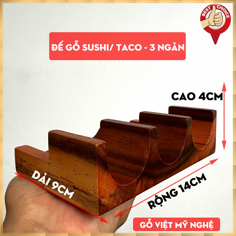 Đế gỗ trưng bày Sushi Taco - 3 ngăn trang trí món ăn Sushi Nhật Bản - Gỗ tự nhiên nguyên khối