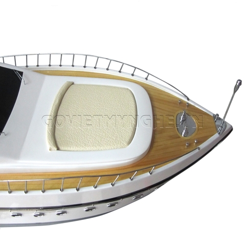 + Mô hình du thuyền gỗ Mangusta 108 được làm từ chất liệu gỗ tự nhiên 100%, bề mặt thân tàu được phun sơn trắng.