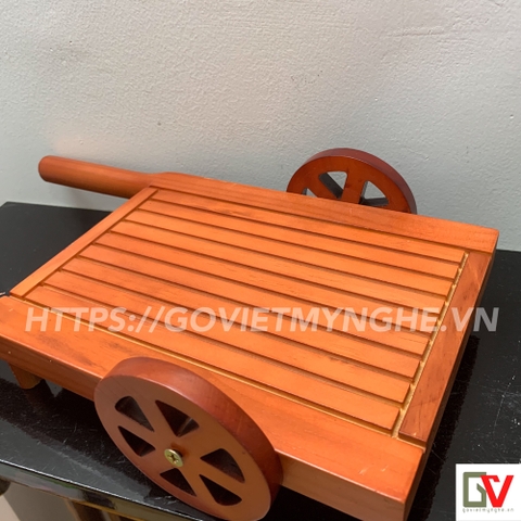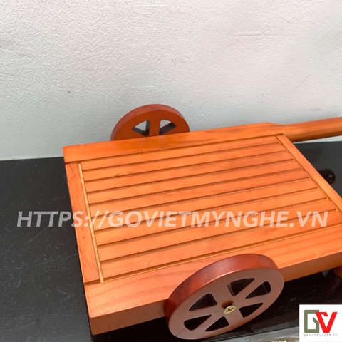 + Khay gỗ được thiết kế theo hình xe kéo bò thực tế, bánh xe quay được. Một phiên bản thu nhỏ của xe kéo bò.