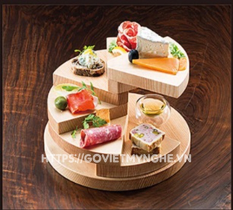 + Khay gỗ bậc thang được dùng để trang trí các món ăn như Sushi, Set BBQ, ColdCut, Bánh Pastry... đa dạng phong cách ẩm thực.