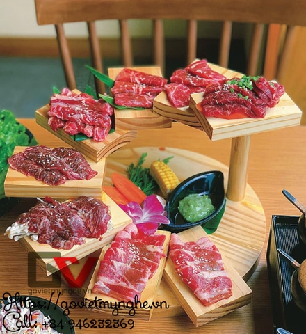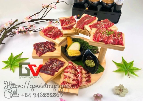 + Khay gỗ bậc thang được dùng để trang trí các món ăn như Sushi, Set BBQ, ColdCut, Bánh Pastry... đa dạng phong cách ẩm thực.