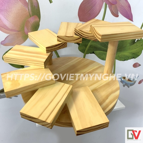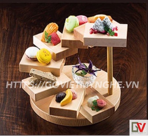 + Khay gỗ trang trí món ăn - khay gỗ bậc thang trang trí - 8 tầng - Gỗ Thông tự nhiên