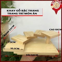 + Khay gỗ bậc thang được làm từ chất liệu gỗ Thông tự nhiên, chất lượng gỗ đạt tiêu chuẩn vệ sinh an toàn thực phẩm và xuất khẩu sang nhiều nước.