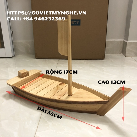 [Dài 55cm - 1 cột buồm] Khay gỗ đựng sushi - khay gỗ thuyền đựng sashimi thuyền gỗ sushi - Gỗ thông