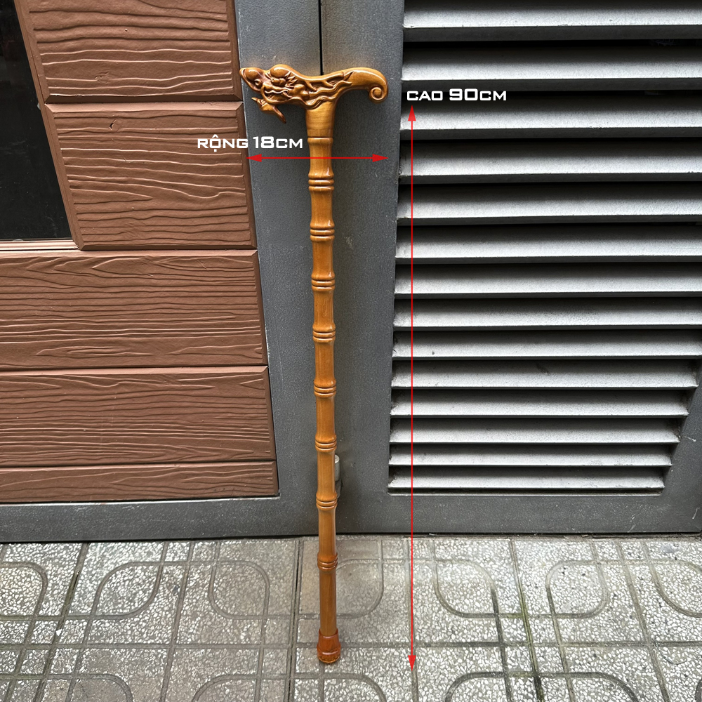 - Gậy gỗ chống được điêu khắc hình đầu rồng với đường nét điêu khắc tinh xảo - tỉ mĩ.
