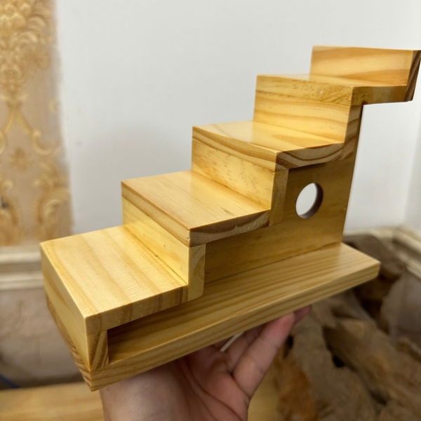+ Khay gỗ bậc thang có thể tiếp xúc trực tiếp với nước, dễ dàng lau chùi, vệ sinh, tẩy rửa.
