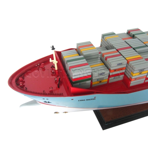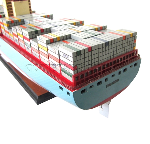 + Mô Hình Tàu Container Chở Hàng Emma Mærsk được hoàn thành với hàng trăm giờ làm việc bởi các nghệ nhân lành nghề có trình độ kỹ thuật cao. Với bàn tay khéo léo, tỉ mỉ và cẩn thận, các nghệ nhân thủ công mỹ nghệ đã mô phỏng từ chiếc thuyền thực tế thành mô hình tàu thuyền gỗ, cùng các chi tiết như vỏ tàu, thân tàu, boong tàu, các container 20'' - 40'', thương hiệu của các công ty Logistics nổi tiếng...
