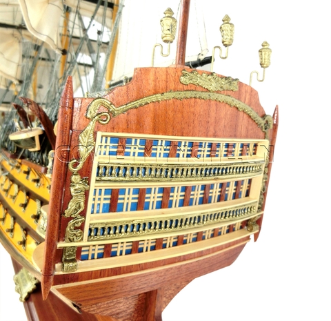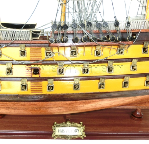 - Đế tàu bằng gỗ sơn màu đen, phía trên có đính kèm bảng tên đồng " HMS VICTORY"