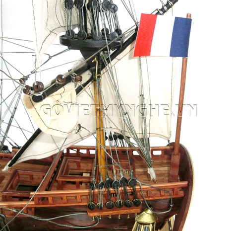 + Phía sau đuôi thuyền được thiết kế chi tiết, với lá cờ nước Pháp, giống với phiên bản thực tế.