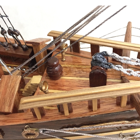 - 2 Mỏ neo tàu bằng chì màu đen ở phía trước mũi tàu và chân vịt phía sau được thiết kế đúng với nguyên bản.