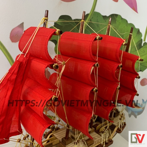 - Bộ buồm được làm bằng vải bố, kèm khuôn nhựa giúp tạo hình cho một con thuyền căng gió.