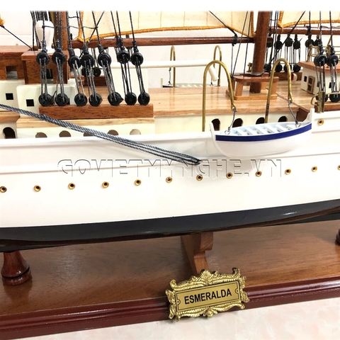 - Thuyền được đính kèm theo 1 bảng tên tàu trên đế gỗ " ESMERALDA"