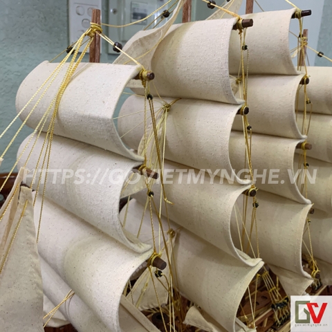 - Bộ buồm được làm bằng vải bố, kèm khuôn nhựa giúp tạo hình cho một con thuyền căng gió.