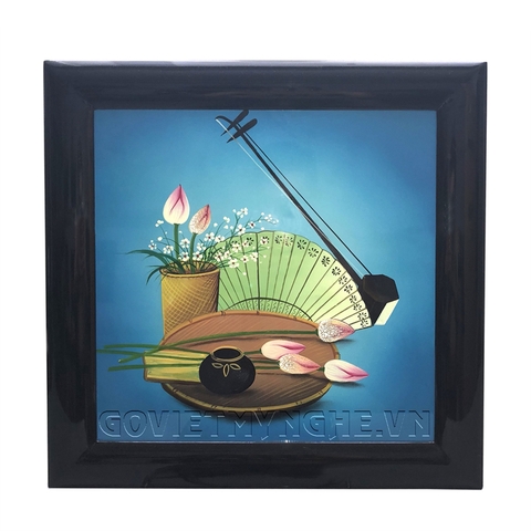 + 01 Tranh Sơn Mài Tĩnh Vật - Hoa Sen & Đàn Nhị - 40x40cm