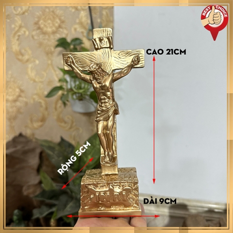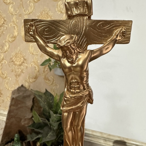 + 01 Tượng đá trang trí cây thánh giá hình chúa Jesus với chữ INRI - Chiều cao 21cm - Màu nhũ đồng