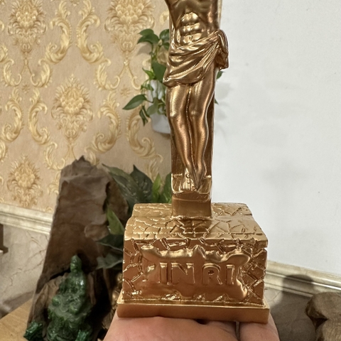 Tượng đá trang trí cây thánh giá hình chúa Jesus với chữ INRI - Chiều cao 21cm - Màu nhũ đồng