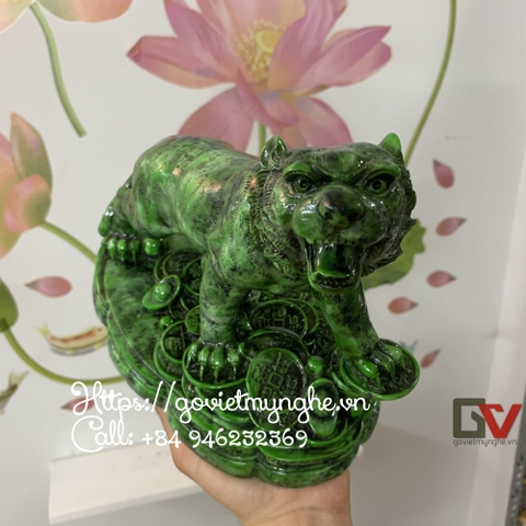 Tượng đá trang trí con Hổ trang trí phong thủy | Xanh lục bích - Cao 18cm