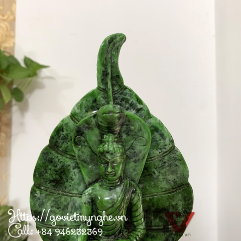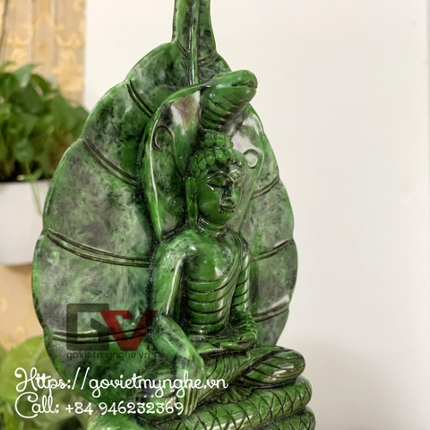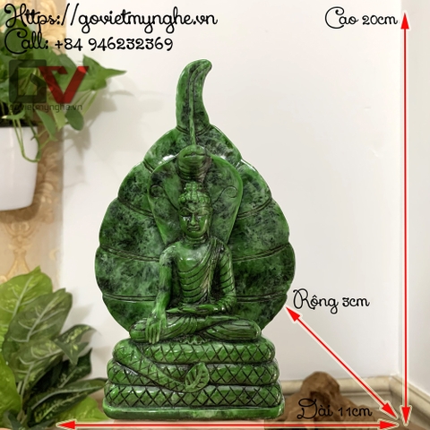 Tượng đá trang trí tượng thần rắn Naga Mucalinda che chở cho Đức Phật Thích Ca - Cao 20cm - Màu xanh lục bích