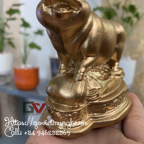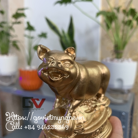 + 01 Tượng con Heo đá trang trí phong thủy bàn làm việc - Cao 9cm - Màu nhũ đồng