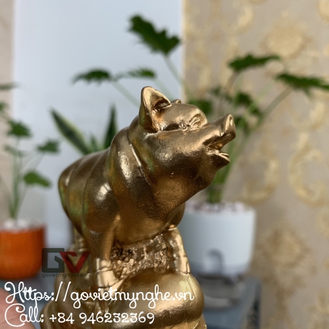 Tượng con Heo đá trang trí phong thủy bàn làm việc - Cao 9cm - Màu nhũ đồng