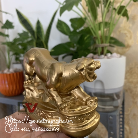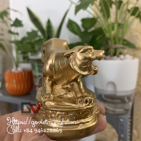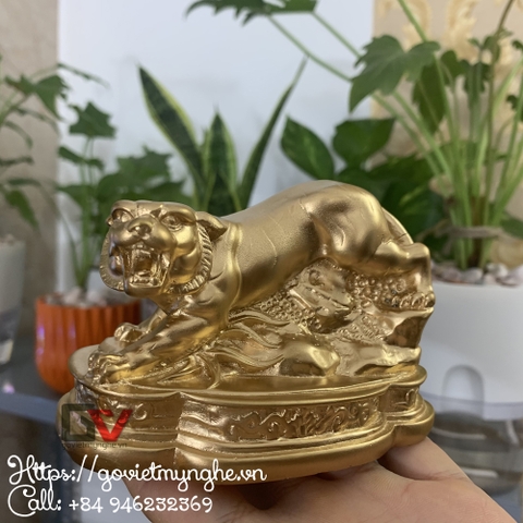 Tượng đá con Hổ trang trí phong thủy bàn làm việc - Màu nhũ đồng - Cao 8cm