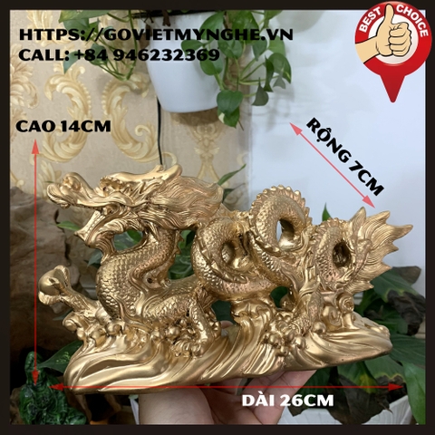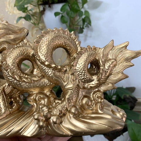 + 01 Tượng đá Rồng phong thủy trang trí bàn làm việc mang may mắn cát tường | Dài 26cm - Màu nhũ đồng