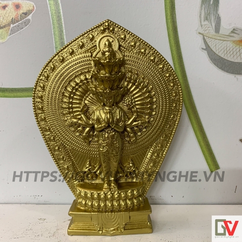 + 01 Tượng Phật Bà Quan Âm nghìn mắt nghìn tay đứng tòa sen - Cao 19cm - Tượng 1 Mặt - Màu vàng