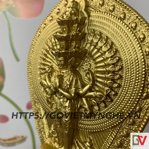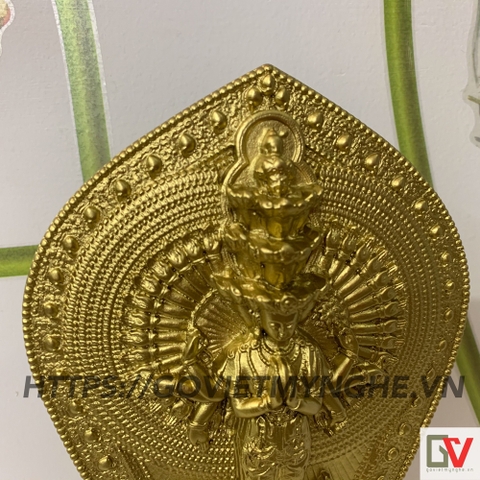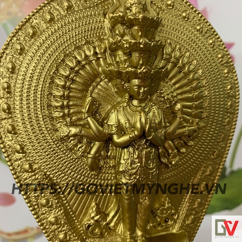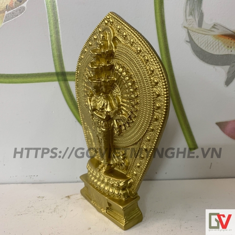 Tượng Phật Bà Quan Âm nghìn mắt nghìn tay đứng tòa sen - Cao 19cm - Tượng 1 Mặt - Màu vàng